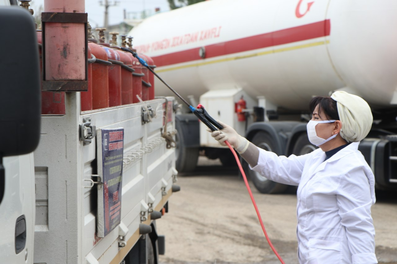 Каждое утро все районные, городские и областные подразделения проводят санитарную обработку территорий, зданий, рабочих мест сотрудников и даже газовых баллонов. Словом сделано все, чтобы обезопасить как сотрудников, так и потребителей.