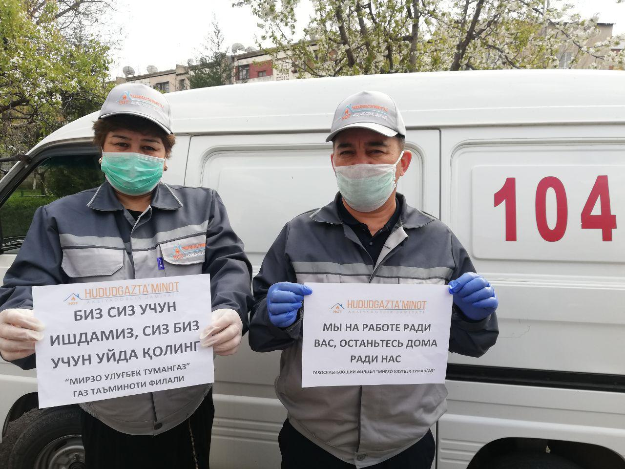АО «Худудгазтаъминот» и его структурные подразделения разработали специальные правила для безопасного взаимоотношения сотрудников системы газоснабжения с потребителями. К примеру, все работники бесплатно обеспечиваются средствами гигиены, в частности, медицинскими перчатками и масками, специальной формой. Кроме того, ежедневно изучается состояние их здоровья и измеряется температура.
